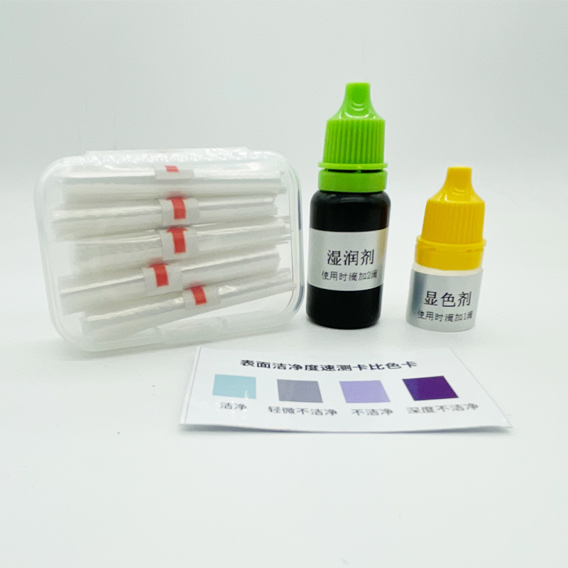 4.滴1滴顯色劑到藥片上,如果物體表面較臟的話,1min內藥片就會變為紫色,即可判定被檢物體不潔凈,否則需要等待10min與標準比色板進行比較確定結果。